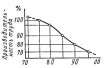 Рис.5.2.2 Залежність працездатності від рівня шуму.