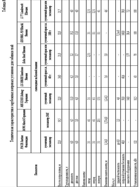Вибір комплекту машин и механізмів для комплексної механізації свайних робіт основується на порівнянні варіантів технологічних схем. Можливі схеми механізації всіх процесів, що входять в комплекс робіт по зведенню свайних фундаментів, намічають з врахуванням належності обладнання, об'ємів робіт і строків їх виконання. Порівняння варіантів технологічних схем здійснюють по розрахунковим техніко-економічним показникам: трудоємкості, вартості, тривалості робіт і енергоємкості. При розрахунку варіантів комплексної механизації процесів варто враховувать можливість виконання робіт в декілька змін поточними методами. При забивці свай в обов'язковому порядці ведуть журнал занурення кожної сваї, складають зводну відомість свай і акти їх динамічних випробувань в установленій формі. При використанні молотів одиночної дії в журнал занурення сваї заносяться следуючі виміри: на початку занурення - число ударів на кожний метр занурення і середню висоту падіння ударної частини молота, а в конці забивки - відмова сваї від трьох залогів по десять ударів в кожному. Причому відмови вимірюють після кожного залогу. При використанні молотів подвійної дії в журналі фіксують час роботи молота, витрачаємий на кожний метр занурення, частоту ударів, величину занурення сваї і число ударів за одну хвилину, тиск пара чи повітря і точність виміру відмови до 1 мм. Забивку свай вважають закінченою при досягненні розрахункової відмови. Свая, не давши при забивці розрахункової відмови, добивається після "відпочинку" в грунті. При перевищенні розрахункової відмови необхідно повідомить про це в проектну організацію для виявлення причин і прийняття рішення.