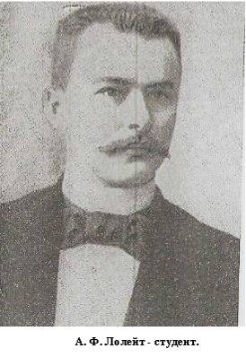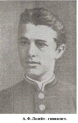 А. Ф. Лолейт родился 5 (18) июня 1868 г. в Орле. К моменту его поступления в гимназию детей было уже пятеро, и они составляли довольно шумную компанию. Тем более, что семья пополнялась еще несколькими учениками, которых воспитывали в доме: заработки главы семьи необходимо было пополнять...