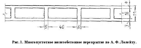 В 1899 г. сооружено уже 26 железобетонных труб под насыпью одной только Витебск-Жлобинской железной дороги. В 1900 г. построены железобетонные своды над винным подвалом в Москве. В 1902 г. в Москве в здании мастерских акционерного общества выполнены пустотные железобетонные стены, которые потом были подвергнуты всесторонним исследованиям на прочность и теплозащитные качества. В 1912 г. Лолейт расскажет об их конструкции и результатах исследований XIV цементному съезду и тогда же предложит устраивать пустотные плоские железобетонные перекрытия (рис. 5).