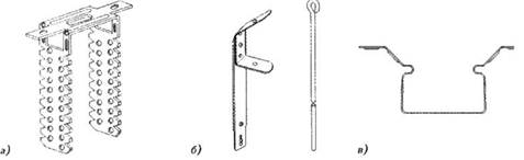 а - з двох рядів дерев 'яних брусків; б - з двох рядів металевих профілів; в - рамна конструкція каркасу з металевих профілів