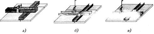 Рис. 5.19. Конструкції деформаційних швів в гіпсокартонних перегородках: а - при одношаровому гіпсокартонному обшиванні з прокладанням за швом гіпсокартонних плит та з облямівкою обшивання; б - при одношаровому обшиванні з встановленням в зоні шва спеціального профілю; в - при двошаровому обшиванні з прокладанням за швом гіпсокартонних плит врозбіжку та з облямівкою обшивання; г - при двошаровому обшиванні з встановленням в зоні шва спеціального профілю та компенсувального клапану