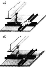 Поперечне (а) і поздовжнє (б) кріплення ГКП до каркасу: