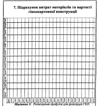 точками кріплення несучих елементів (тих, до яких закріплюється ГКП) буквою у, а відстань між сусідніми несучими елементами.