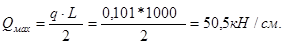 qx н = (0,182+0,054+1,112)*5.1*0,95 = 6.53 кН/м = 0,0653кН/см.