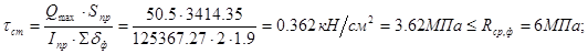 Перевіряємо міцність приклеєних дошок, на які опирається траверса. Приймаємо довжину приклеювання ![]()