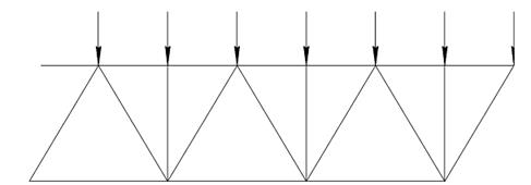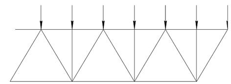 Ферма нагружена в усилиями Р=4 кН, приложенных в узлах верхних поясов, и подвижной нагрузкой Q=30 кН перемещающейся по верхнему поясу между узлами 5 и 45.