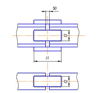 где l3= 400 мм , l2 = 160 мм – ширины боковой и верхней накладок; приняты из габаритов двутавра и условия беспрепятственного доступа и проведения сварки.