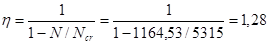 Коэффициент, учитывающий влияние прогиба на значение эксцентриситета продольной силы: