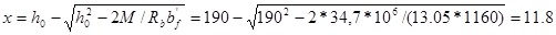 Принимаем по сортаменту 4стержна d = 20 А- III (As + As ’ = 1256мм2 ). Если бы проверка не сошлась, то во втором приближении следовало бы принять значение φ среднее между назначенным в начале и полученным в итоге расчёта.