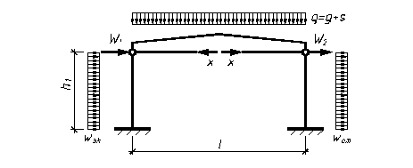 3. Совмещенные геометрические и расчетные схемы поперечника здания и стропильной конструкции с указанием основных размеров и всех нагрузок в кН/м (масштаб 1:200).