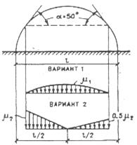 m = 1 при a£ 25°; m = 0 при a³ 60°. Варианты 2 и 3 следует учитывать для зданий с двускатными покрытиями (профиль б), при этом: вариант 2 — при 20°£a£ 30°; вариант 3 — при 10°£a£ 30° только при наличии ходовых мостиков или аэрационных устройств по коньку покрытия. Здесь a — угол уклона покрытия. |