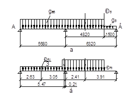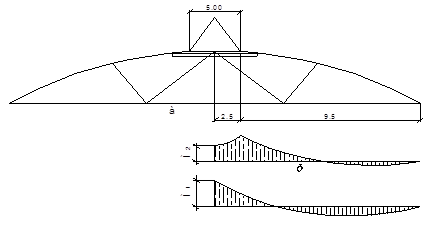 Рис. 5. Схемы загружения верхнего пояса: а-постоянная нагрузка; б-временная нагрузка.