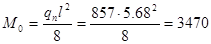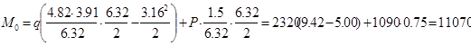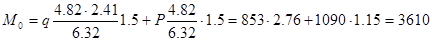 2. При подъеме фермы в вертикальном положении с помощью 5-метровой траверсы, принимая все фермы равномерно распределенным по длине, получим изгибающий момент под узлом траверсы
