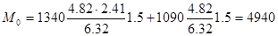 При подъеме с помощью 5-метровой траверсы изгибающий момент в коньковом узле во время кантовки фермы (рис. 13, б)