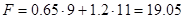 Расчетная нагрузка на узлы фермы (рис. 6) следующая: