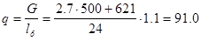 Считая вес верхнего пояса равным весу всего пиломатериала, использовнного для изготовления фермы, получим нагрузку на верхний пояс