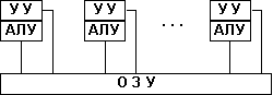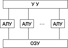 . Здесь несколько АЛУ работают под управлением одного УУ . Это означает, что множество данных может обрабатываться по одной программе — то есть по одному потоку команд.