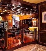 Потолок в стиле ар-деко: Выбор материала отделки потолка в интерьере ар-деко не принципиален. Главное, не лишать интерьер ощущения роскоши и всячески его подчеркивать. Поэтому, подойдут от глянцевого белого потолка до деревянного кессонного. Орнамент потолка строг и четко симметричен, также могут использоваться этнические узоры.