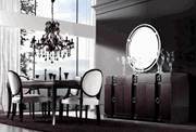 Широко применяется кожаная мебель. Мебель декорируется хромированными элементами, стеклом, бронзой, кристаллами, кожаными вставками. Мебелью стараются подчеркнуть шик интерьера.