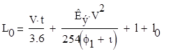 где L0 – расстояние между движущимися друг за другом автомобилями, м;