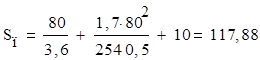 где L1 – путь, пройденный автомобилем за время с момента, когда водитель увидел препятствие, до начала полного торможения, м; Sт – тормозной путь автомобиля, м.