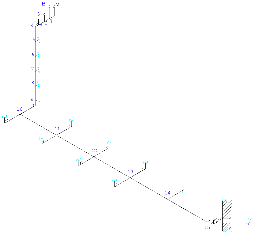 Рассчитать сеть внутреннего водопровода жилого здания, квартиры которого оборудованы умывальниками, мойками, ваннами с душами и унитазами со смывными бачками (схема водопровода показана на рис. 1).
