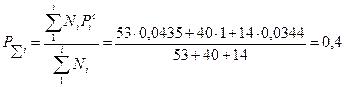N = 4 ∙ 1 ∙ 7 = 28; N Р = 28 ∙ 0,00486 = 0,136 => α = 0,383;