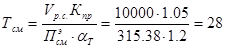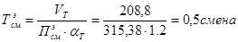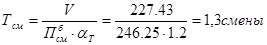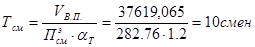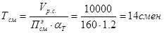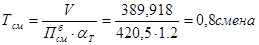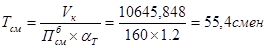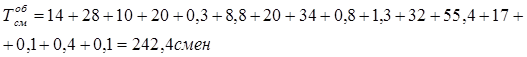 гдеТcмi - продолжительность работы в сменах( подсчитывается для каждого вида работ);