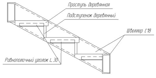Лестничные марши выполнены из деревянных лестниц на металлических косаурах Рис.6.