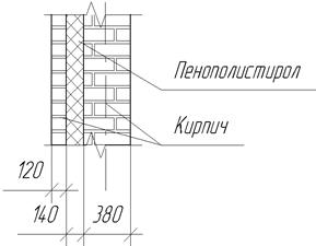 Наружные стены толщиной 640мм из кирпича керамического пустотного, r=1300 кг/м3 , и утеплителя - пенополистирола, r=150кг/м3.