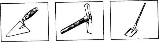 Рис. 1. Кельма Рис. 2. Молоток-кайло Рис. 3. Лопата
