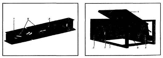 1) корпус; 2) ампули; 3) кришка 1) Рама; 2) ємкість з гвинтом для перемішування розчину; 3) моторний відсік; 4) кришка,