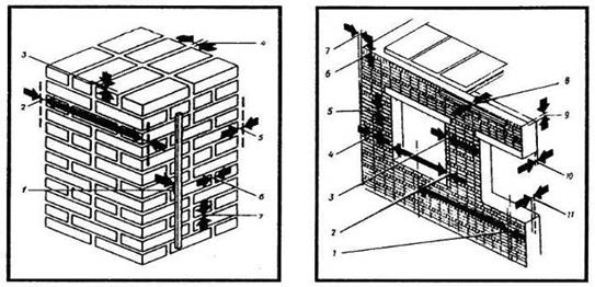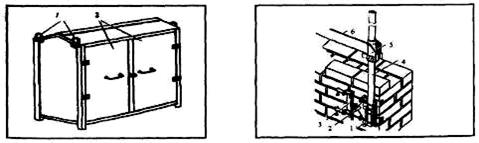 Причальні скоби П-подібної форми (рис. 5). Закріплюють їх у швах мурування. Скоби виготовляють з листової сталі, надівають на цеглину, покладену горизонтально.