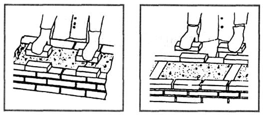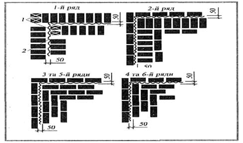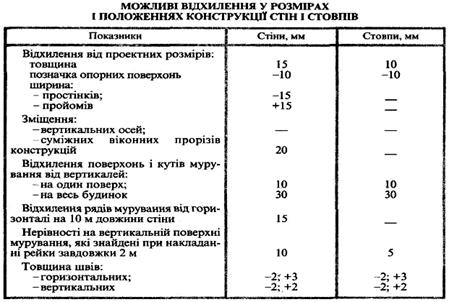 мурування при зведенні перегородок з керамічної або силікатної одинарної порожнистої цегли знаходимо у таблиці 5.