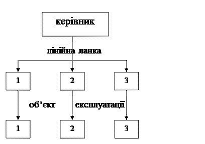 2. Лінійна структура – роботи по технічній експлуатації відповідно до заяв організовується і виконується через лінійні ланки, які безпосередньо виходять на об’єкт.