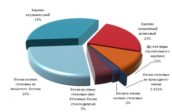 Рисунок 6. Доли производства различных видов стеновых материалов в январе октябре 2009 года