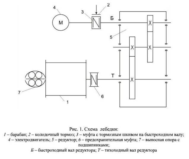 2. Общий расчет грузовой лебедки стрелового крана (рис. 1).