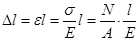 Абсолютное удлинение (укорочение) бруса (стержня) выражается формулой: