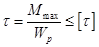при площадке в виде полоски. Значение максимального касательного напряжения
