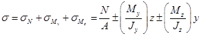 Продольная сила и напряжение положительны при растяжении и отрицательны при сжатии.