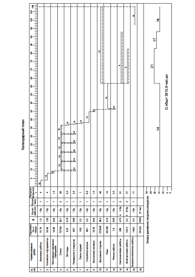 В соответствии с календарным планом строительства , разрабатывается календарный план обеспечения , график потребности в рабочих кадрах и материально - технических ресурсах .