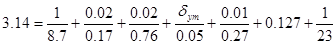 S3 = 0.8*2.89*10-4 +0.8*0.59*10-4 +0.79*2.89*10-4 =5.06*10-4 кгс/м2