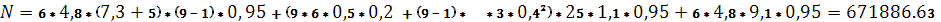 N= Af *(n-2)*(gsq+psq)*gn/2+ Аf*qsq * gn/2+ Ar*A*g*gf*gn*(n-1)/2=