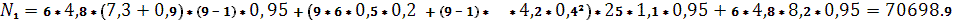 =4,8*5,2*4*8335*0,95/2+4,8*5,2*8335*0,95/2+0,125*4,8*25000*1,1*0,95*5/2=533286Н