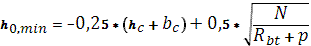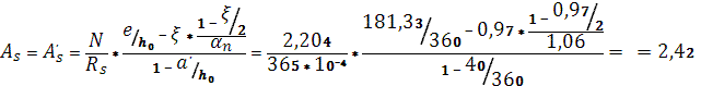 Ac – площадь сжатой зоны сечения при прямоугольной эпюре напряжений, определяемая из условия, что ее центр совпадает с точкой приложения расчетной продольной силы N