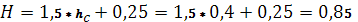 Высота фундамента из условий заделки колонны в зависимости от размеров ее сечения: