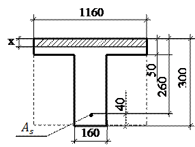 237144375Н Н*см > 8567000Н*см - условие выполняется => нейтральная ось сжатой зоны находится в полочке. Ведем расчет как для прямоугольного сечения с шириной b’f = 1160 мм