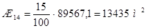 частка в % загальної площі відповідно у 5, 9 та 14 -