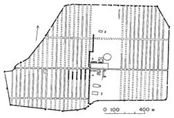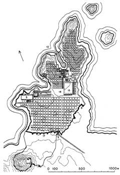 Селинунт, возникший на западной оконечности о. Сицилия, был одним из полисов, основанных выходцами из Мегары в середине VII в. до н. э. Акрополь Селинунта располагался на плоской скале, ограниченной с запада долиной небольшой реки, а с востока морской бухтой с песчаными пологими берегами. Здесь, по - видимому, находилась торговая гавань. На акрополе, параллельно друг другу, располагались главные храмы. Большая часть этих сооружений относится к VI в. до н. э. Быстрый рост города и активная торговля с другими греческими полисами, а также с Карфагеном, вызвали необходимость расширения города и строительства новой группы храмов на соседнем скалистом плоскогорье, восточнее города. Несмотря на то, что город не сохранился, археологи полагают, что планировка акрополя относится к архаической эпохе и что тогда уже были проложены две пересекающиеся улицы северо — южного и западно — восточного направлений. Исследователи установили, что ширина улицы северо - южного направления насчитывала около 9 м и что на нее выходили кварталы протяженностью около 30 м с поперечными проходами в 3, 6 - 3, 9 м. Пример Селинунта показывает, что уже в архаический период сложилась регулярная планировка.